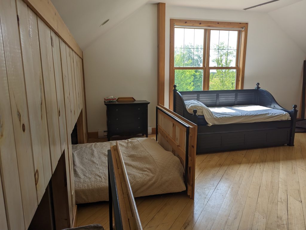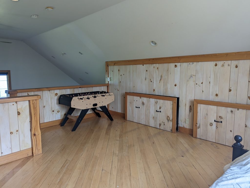 The loft area has 2 double beds and 2 single beds that pull out from the walls, as well as 1 single day bed.
